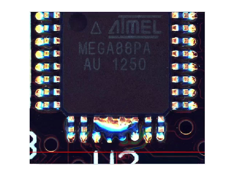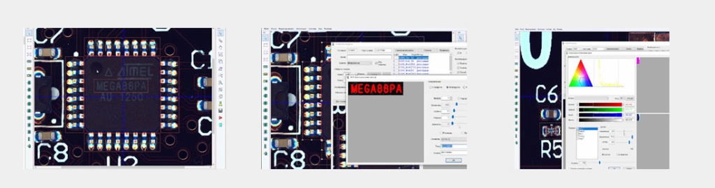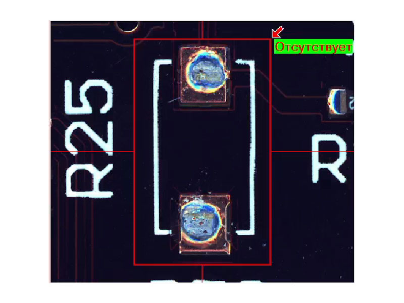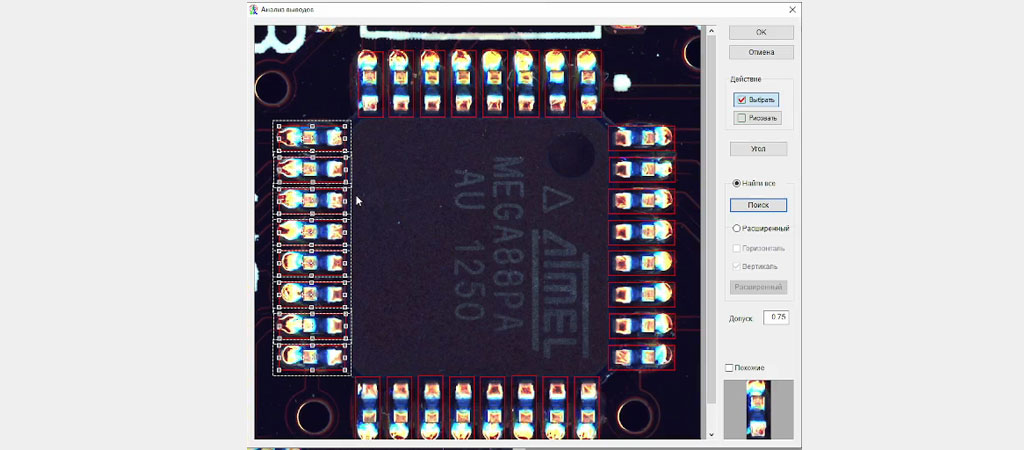 В процессе автоматического контроля программное обеспечение анализирует цвет, яркость, форму и другие характеристики элементов платы, сравнивая их с заданными эталонами. При обнаружении несоответствий система автоматически маркирует дефекты на изображении и формирует отчёт.