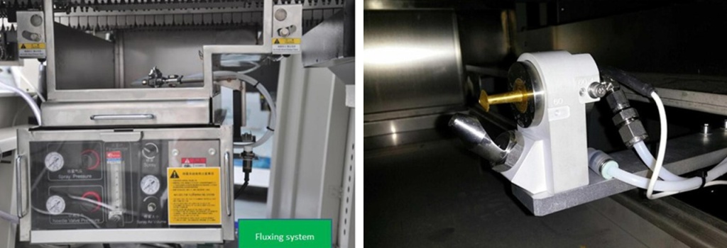 Система автоматического флюсования HWS обеспечивает точность нанесения флюса и его экономичный расход. Она включает самоочищающиеся форсунки и емкость с пневмоподачей флюса для надежной работы. Стандартная комплектация содержит систему дозирования флюса с расходомером, что позволяет снизить расход материала и гарантировать равномерное распыление.Автоматический механизм нанесения использует прецизионные форсунки, установленные на привод с возвратно поступательным движением по оси Y. Это обеспечивает равномерное и точное покрытие флюсом по всей площади платы. Система автоматически адаптируется под размер платы и применяет высокоточный низконапорный распылитель, что дает превосходное покрытие и проникновение флюса в монтажные отверстия.