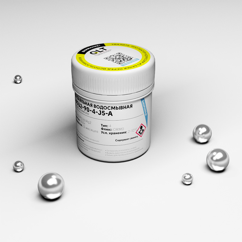 Водосмывная паяльная паста, для поверхностного монтажа QLT-P762-90-4-J5-A , Sn62Pb36Ag2 тип 3/4/5 с протектором коррозии, 500г
