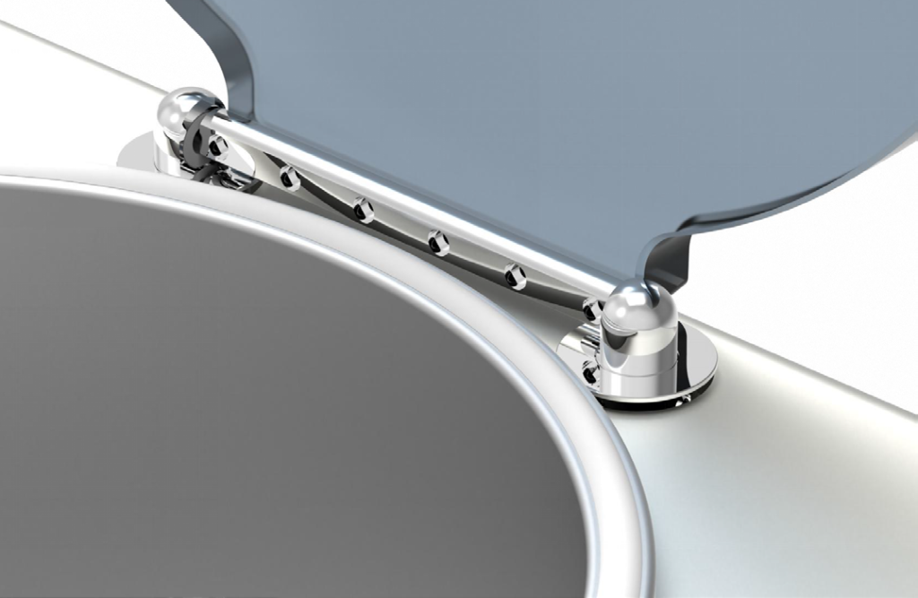 Оригинальная конструкция с двойным прямолинейным подъёмом дверной оси позволяет крышке всегда подниматься строго вертикально под углом 90°.